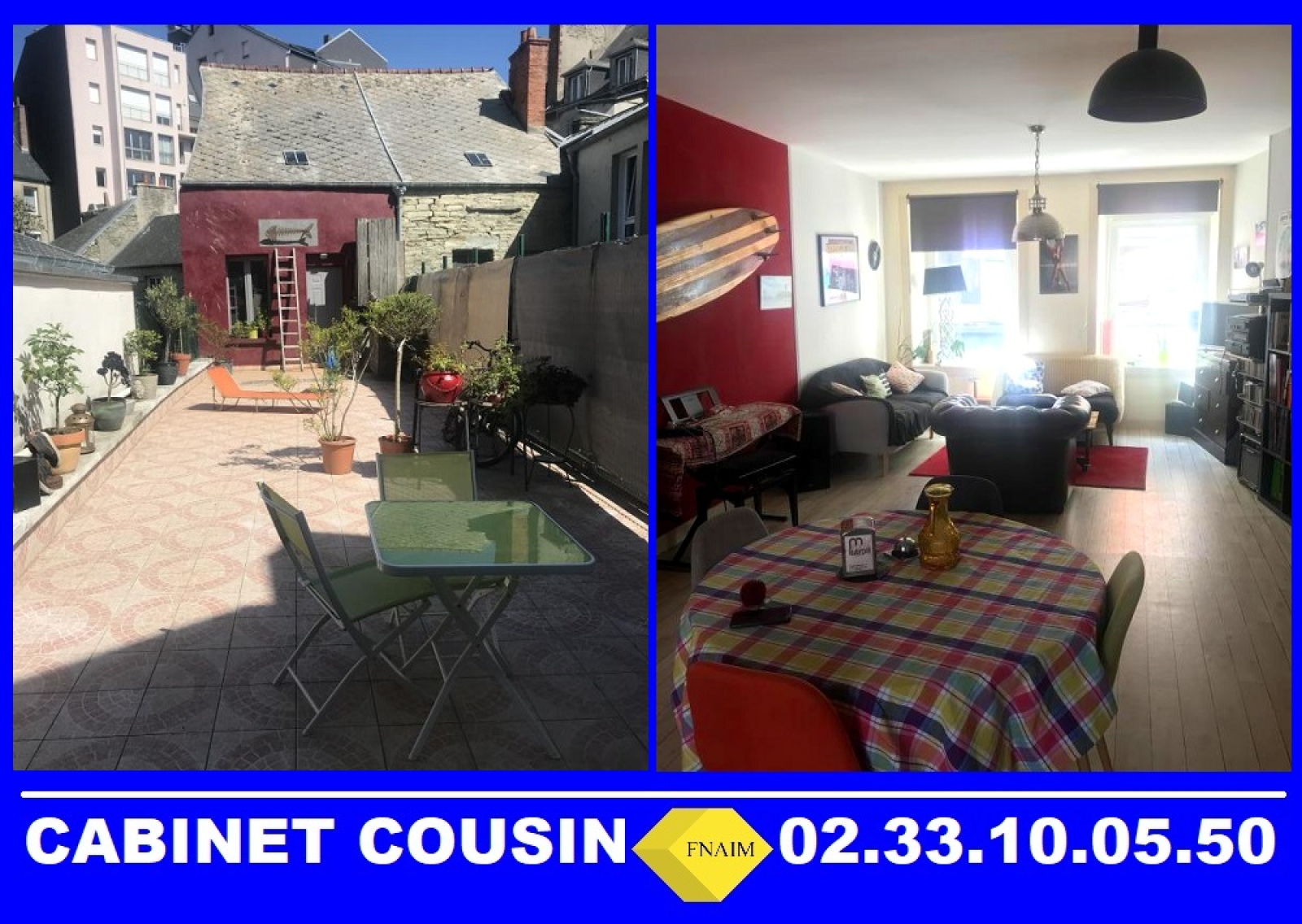 Maison de ville sur 3 niveaux de type F5 non meublée de 112.37 m² avec une grande terrasse et un cellier comprenant en RDC une entrée. Au 1er une cuisine aménagée ouverte sur un séjour salon, un palier, deux chambres, une salle de bain et un WC. Au second une pièce, une salle d'eau et un wc