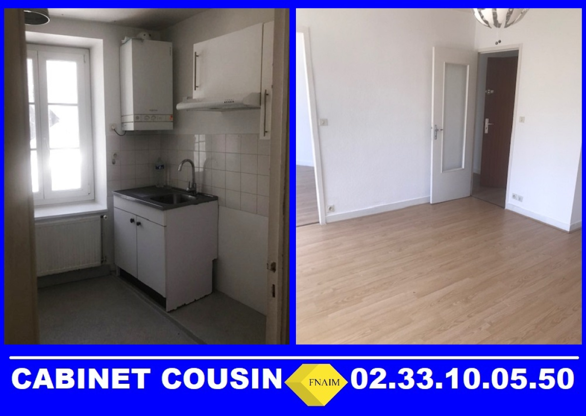 CHERBOURG EN COTENTIN, secteur Notre Dame appartement F3 non meublé de 55.20 m² comprenant une entrée, une cuisine nue séparée, une pièce principale, deux chambres, une salle de bain et un WC.