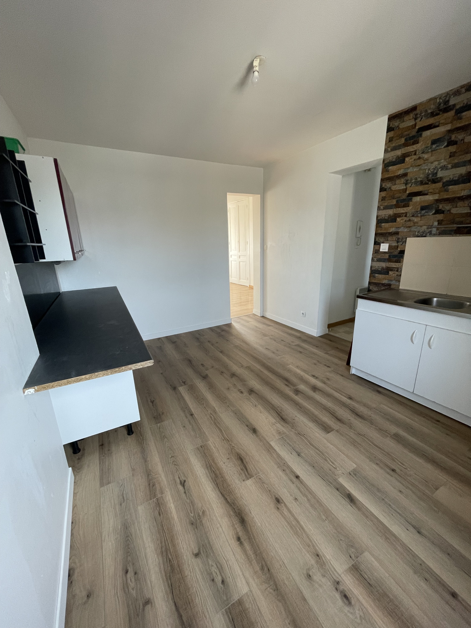 CHERBOURG EN COTENTIN, secteur Eglise du VOEUX appartement F3 en duplex de 50 m² non meublé comprenant une cuisine ouverte sur une pièce principale, WC. A l'étage une pièce, une chambre, une SDE.