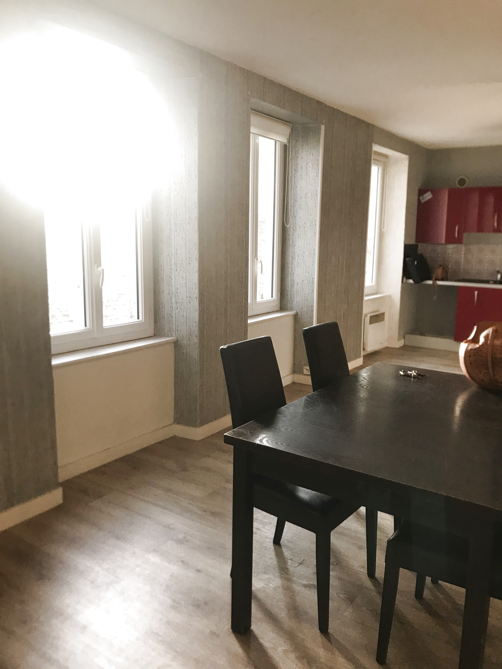 CHERBOURG EN COTENTIN (Hyper centre) Appartement F3 en duplex non meublée de 63 m² sans extérieur comprenant une entrée, une cuisine aménagée ouverte sur une pièce principale. Au 1er étage , WC+ SDB, deux chambres. Un cellier.