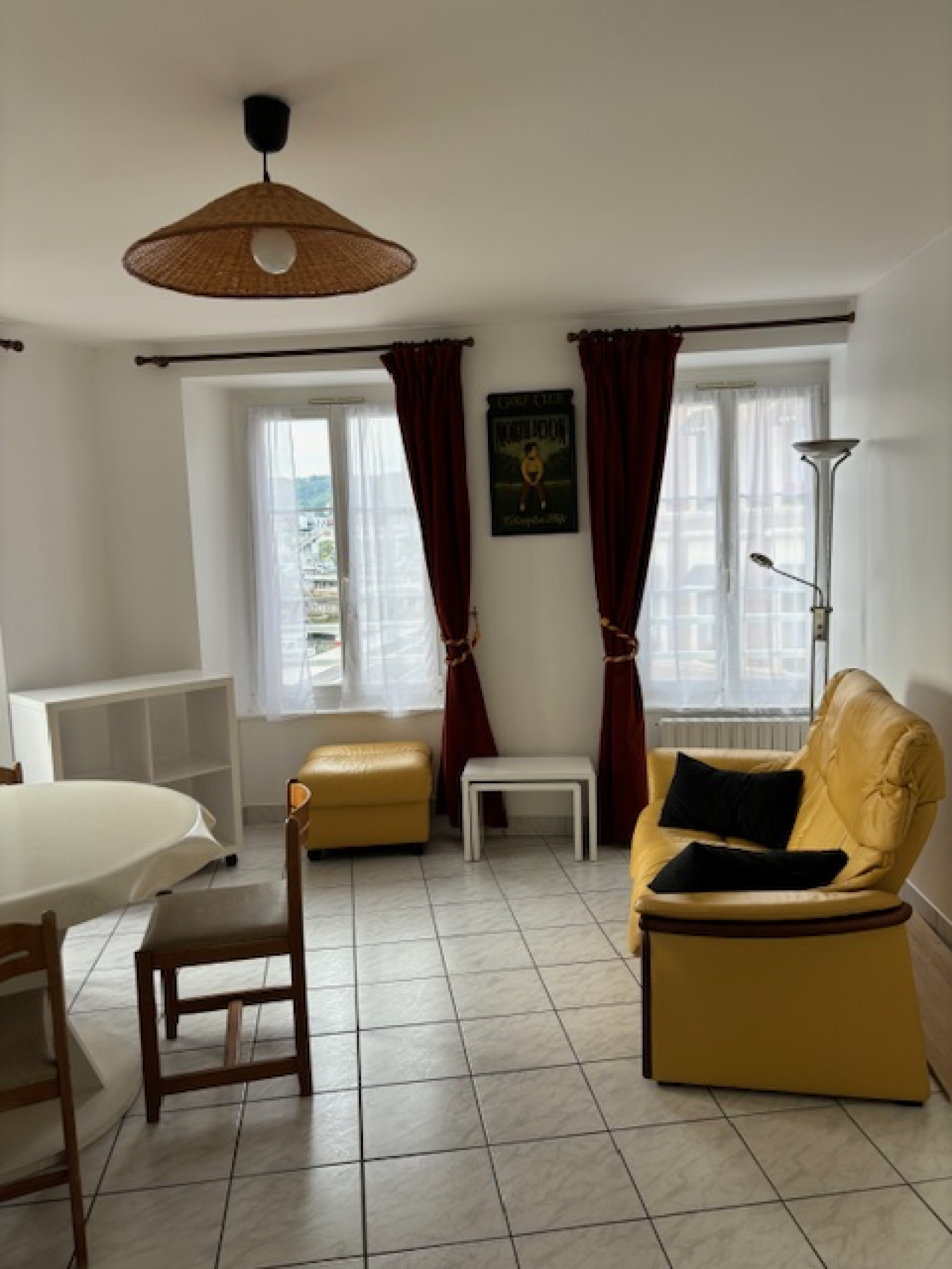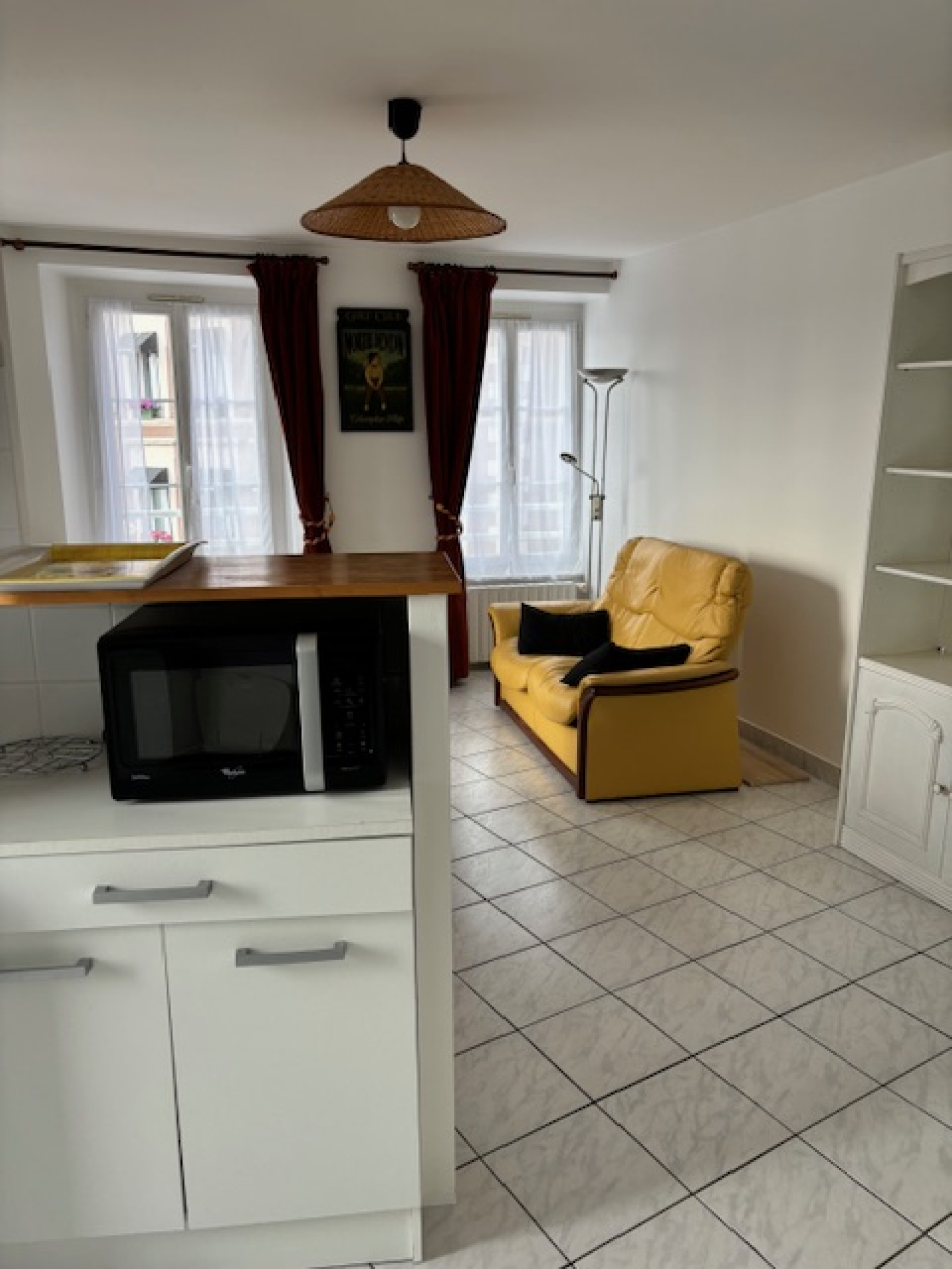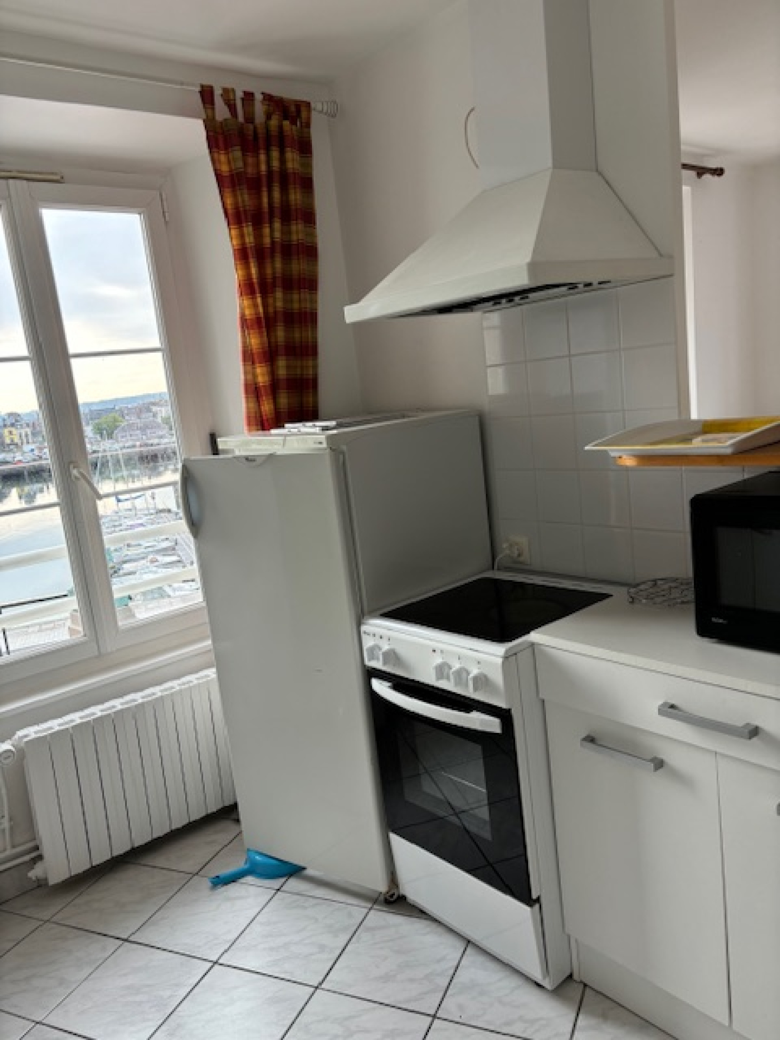 CHERBOURG EN COTENTIN, appartement F2 meublé de 35.80 m² , au 2ème étage comprenant une cuisine aménagée et équipée, une pièce de vie avec vue sur le port, une chambre, une salle d'eau avec WC.