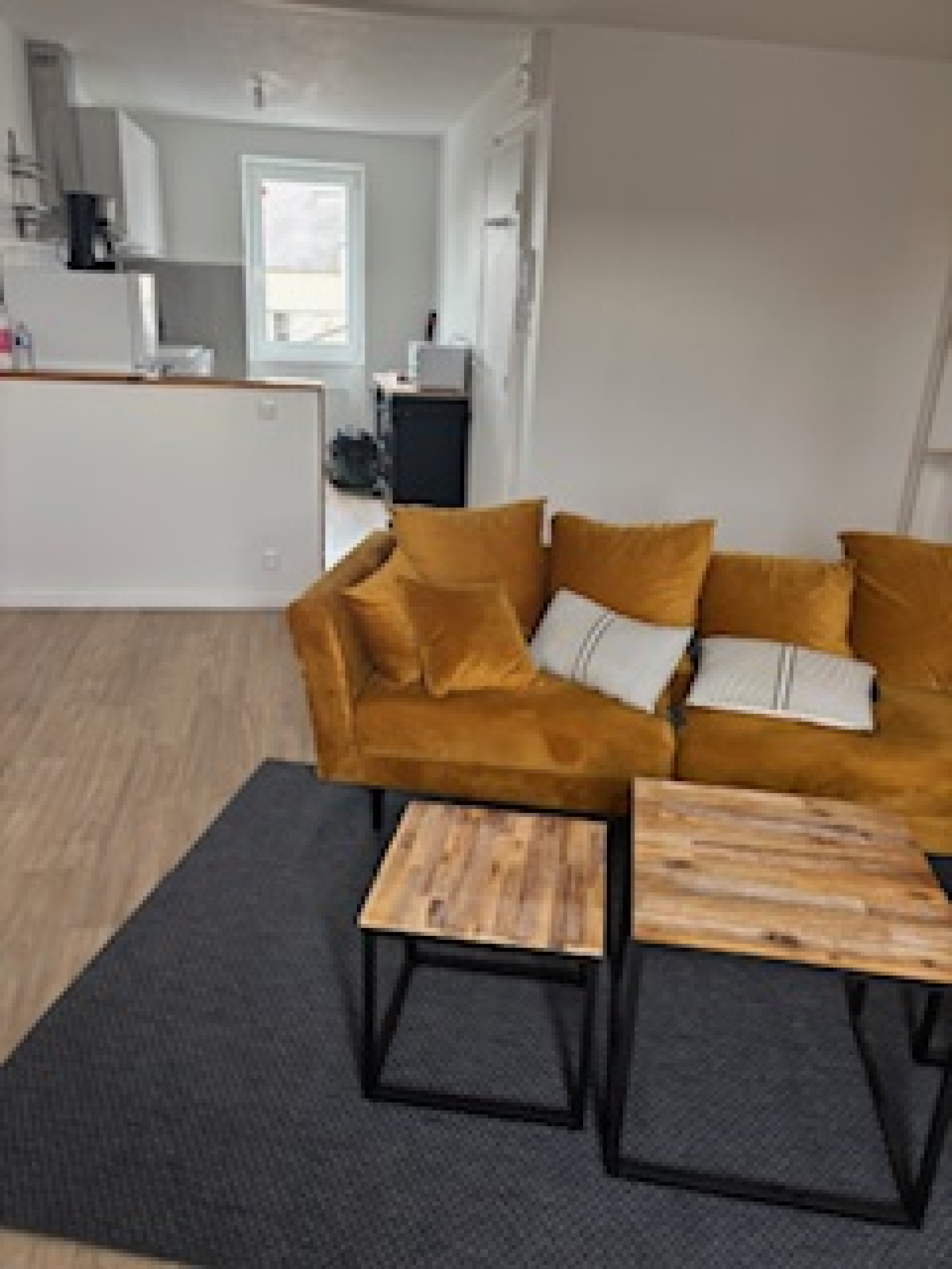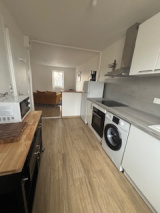 CHERBOURG EN COTENTIN (QUERQUEVILLE Bourg) appartement F3 rénové meublé de 69 m² comprenant une cuisine aménagée et équipée ouverte sur une belle pièce de vie, un salon, une SDE avec WC, deux chambres.